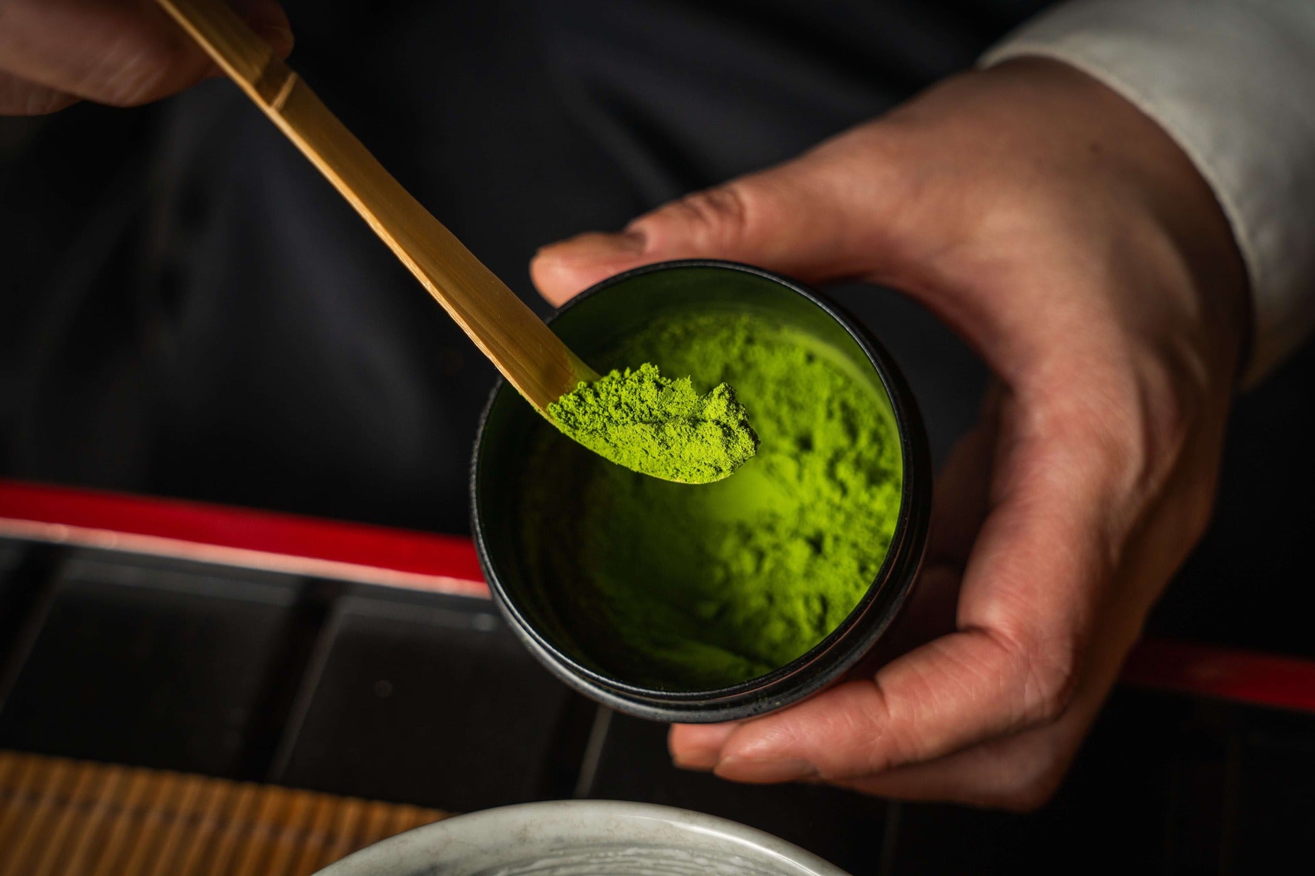 Do you want to make a stronger version, so-called Koicha (thick Matcha), you use more matcha powder and less water, and you whisk more slowly to create a thicker consistency.