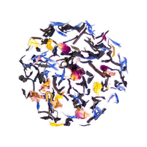 Beautiful brushstrokes of red, pink and blue fill the Hawaiian sky at sunset. Uniquely beautiful is the inspiration for this black tea blend, colorful and packed with tropical flavor. A sweet blend of various fruits such as jackfruit and mango, with colorful flowers and a top note of pineapple.